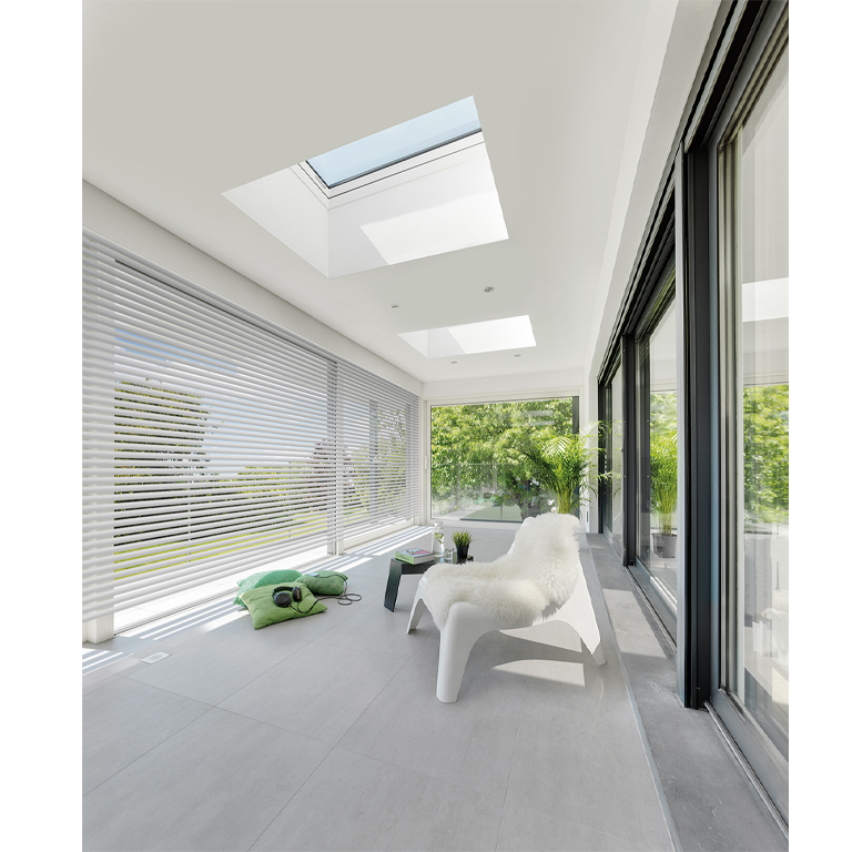 Okno do dachów płaskich typu F to nowoczesne spojrzenie na produkt. Charakteryzuje się bardzo dobrymi parametrami termoizolacyjnymi oraz nowoczesnym wyglądem. Budowa ościeżnicy jest taka jak okien z kopułą. Główną różnicę stanowi pakiet szybowy, który wykonany jest z wykorzystaniem nowoczesnych technologii wklejania szyb zapewniając wysoką trwałość okna i estetyczny wygląd.