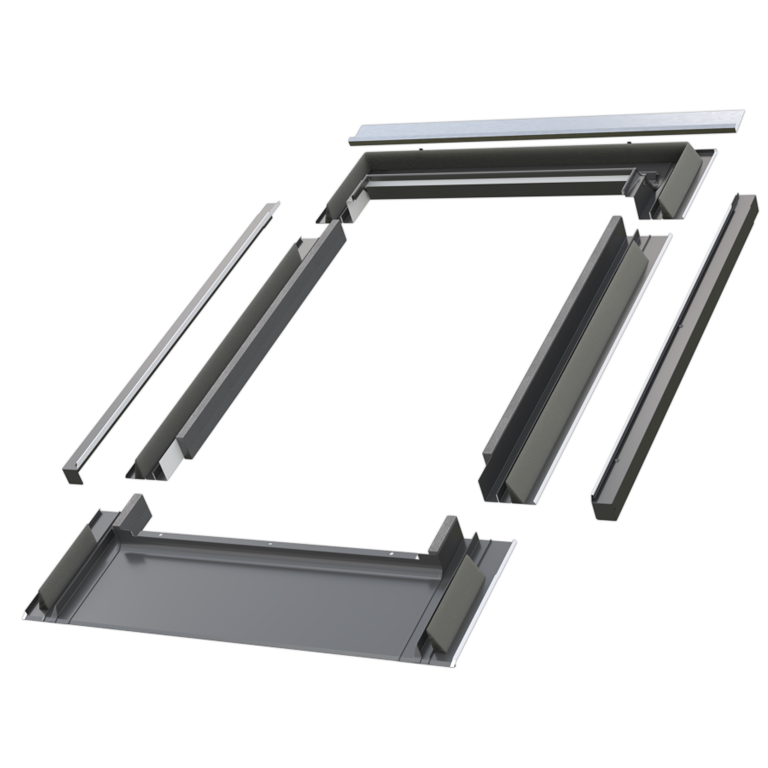 Kołnierz uszczelniający EZV-FT umożliwia szczelne połączenie okna połaciowego z pokryciem dachowym typu dachówka płaska. Specjalne opracowane elementy kołnierza zapewniają szybki i estetyczny sposób montażu okna dachowego w tym coraz popularniejszym rodzaju dachówek. Wydłużony dolny element kołnierza nie jest wyposażony w fartuch ołowiany co znacznie poprawia estetykę montażu w tym pokryciu i zapewnia doskonałą szczelność połączenia. Specjalna konstrukcja usztywnia dolny element kołnierza i zabezpiecza go przed deformacją, np. w wyniku zalegania śniegu . Standardowo przystosowany jest do montażu pojedynczego okna w połaci dachu. Występuje również w wersji modułowej do zespalania okien w grupy: poziome, pionowe i blokowe.